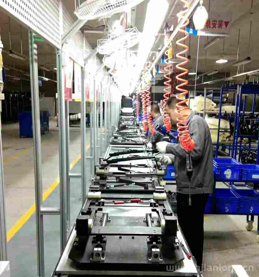 2. Assembly line, automatic assembly line, assembly line, automatic assembly line. The main body of the assembly line is made of 40*40*1.5mm (thick) iron square pass, which is installed every 2 meters.